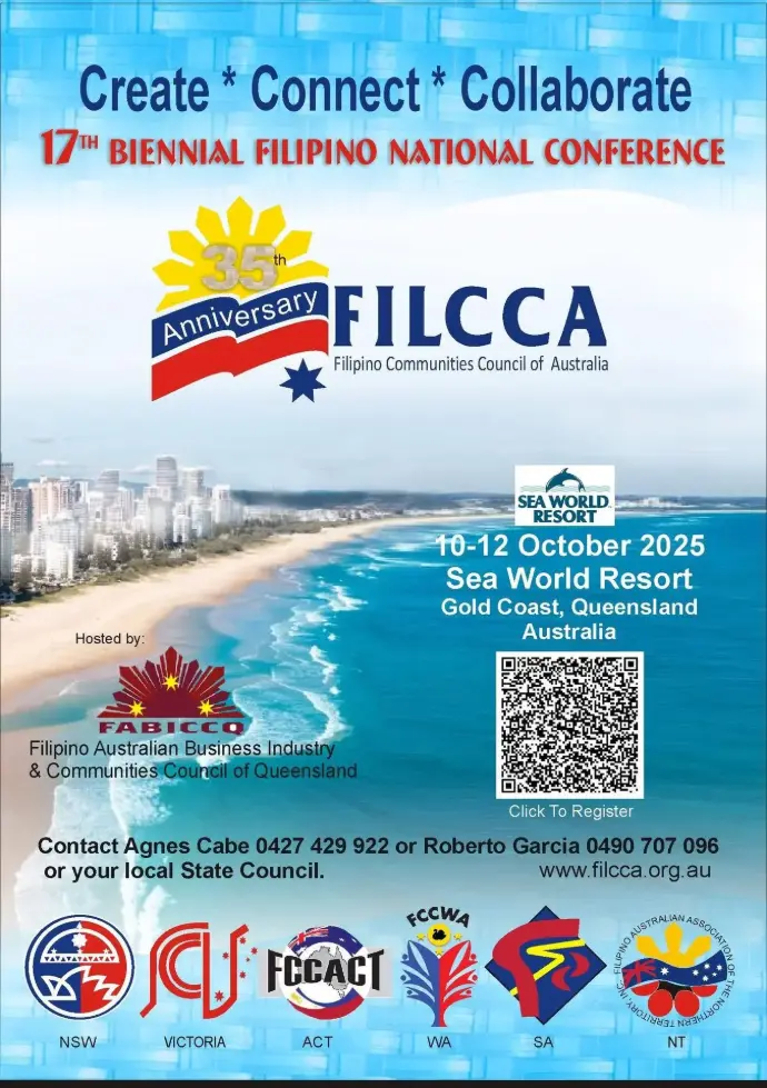 Gold Coast, Australia – The Filipino Communities Council of Australia (FILCCA) proudly announces the 17th Biennial National Filipino Conference, to be held from 10-12 October 2025, at Sea World Resort on the Gold Coast, Queensland.